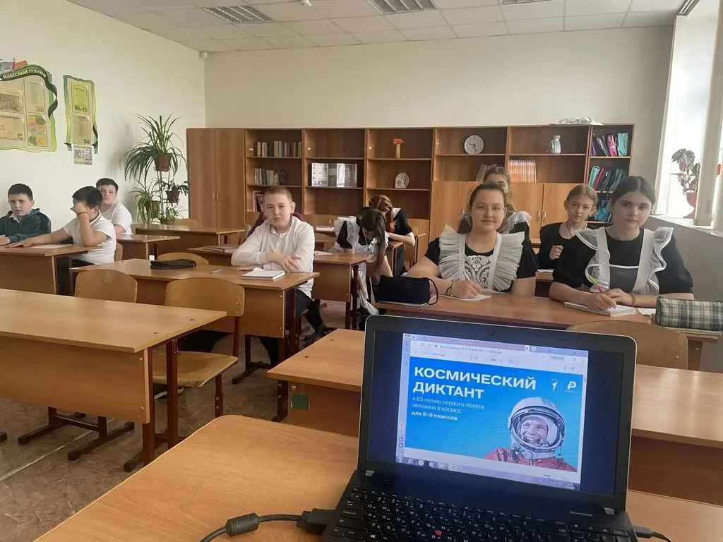 В нашей советник директора по воспитанию Наталья Чеботарева совместно с учителем географии Черемисовой В. В. провели для учащихся школы формат №1 - тематический диктант, разработанный участниками Федерального Совета Первых, посвященный 65-летию полета Ю.А. Гагарина в космос, истории космонавтики, биографиям космонавтов и работе МКС.
