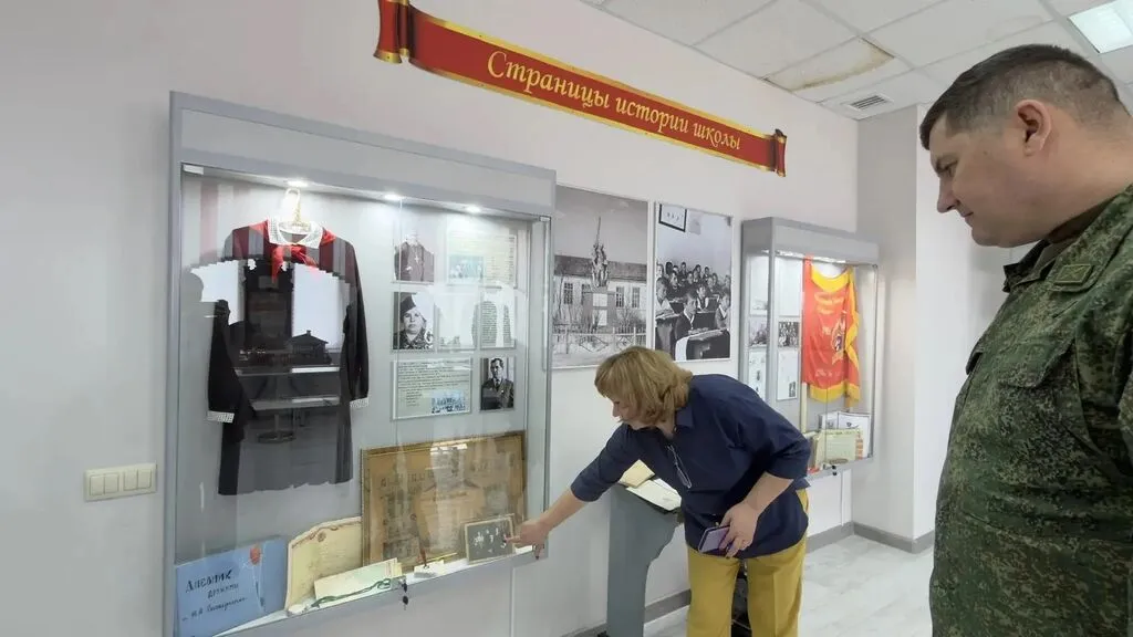 Гости внимательно изучили наши стенды и витрины, посвящённые героическим страницам прошлого.